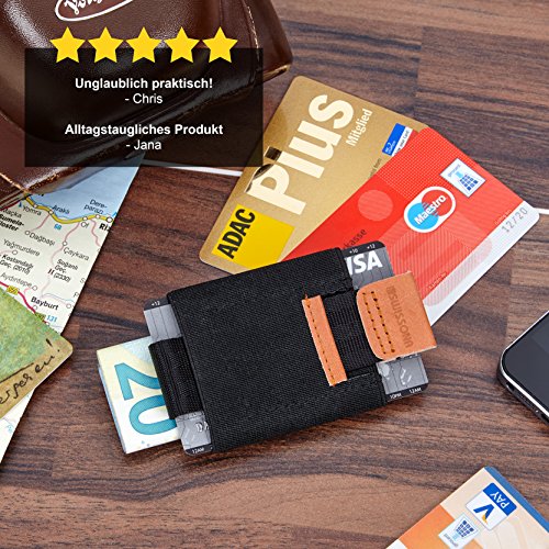 SWISSONA porta carte in materiale plastico elasticizzato e vera pelle | porta carte di credito, astuccio per carte, mini portafoglio, portafogli, borsellino per max. 16 carte