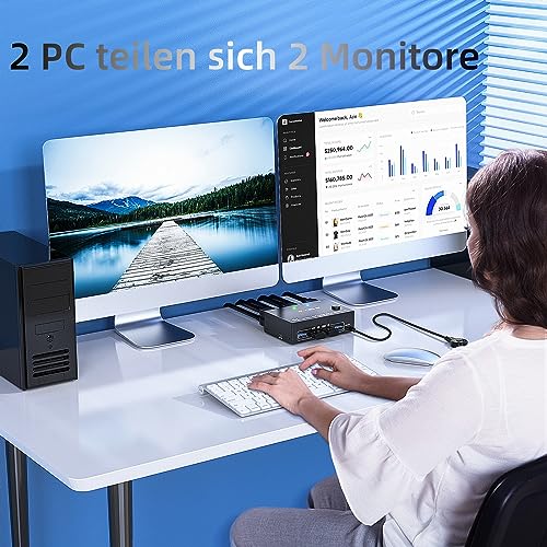 Switch KVM DisplayPort 2 PC 2 monitor: con questo switch per monitor 2 PC 2 è possibile controllare 2 PC con un solo set di mouse con tastiera cablata o wireless e condividere 4 dispositivi USB 3.0 e 2 monitor (modalità avanzata o modalità copia).