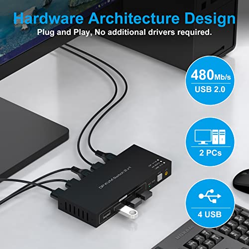 KVM Switch DisplayPort 2 porte 4K 60Hz USB 2.0 DP 1.2 per Switch KVM DP 2 Computer 1 Monitor con 4 HUB USB2.0 Supporto Controllo Cavi Include 2 Cavi USB2.0