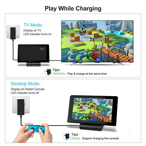 [riproduzione durante la ricarica] Il nostro Switch dock richiede solo un consumo energetico molto basso e supporta l'interfaccia USB e di tipo C. Se si desidera riprodurre e caricare allo stesso tempo, è necessario un alimentatore da 15 V 2,6 A, si consiglia il caricatore interruttore originale. L'adattatore 5V / 2A di tipo C supporta solo la ricarica della console