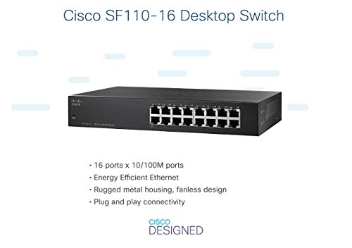 Switch non gestito Cisco SF110-16 con 16 porte 10/100, protezione limitata a vita (SF110-16-EU)