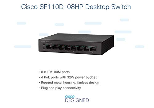 Switch non gestito Cisco SF110D-08HP con 8 porte 32W 10/100 PoE, protezione limitata a vita (SF110D-08HP-EU)