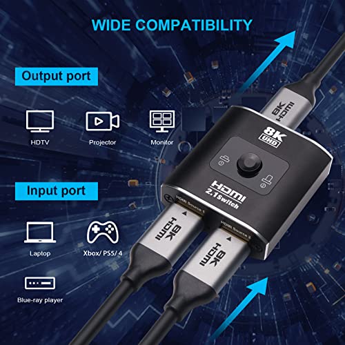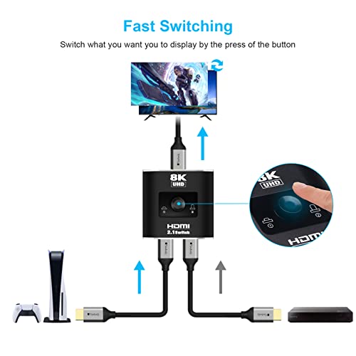 Switch HDMI 8K@60Hz Switcher HDMI 2 in 1 out 4K @ 120Hz, Switch HDMI direzionale Ultra HD ad alta velocità 48 Gbps per PS5 Xbox (solo 2 sorgenti su 1 display)