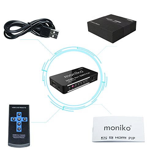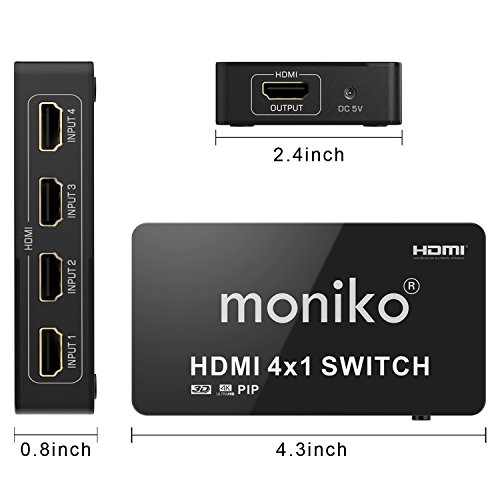 Switch HDMI 4 x 1 4 porte switch splitter box 1.4 con telecomando IR Wireless Moniko 4 input 1 output audio con supporto 4 kx2 K 30 Hz 3D 1080p PIP