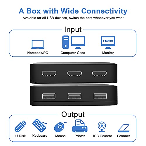 KVM Switch HDMI USB 3 porte, Yeemie 2 PC 1 monitor 4K@30Hz Switch KVM HDMI per 2 computer Condividi tastiera e mouse, 3 USB 2.0 con 2 cavi HDMI a USB HDMI