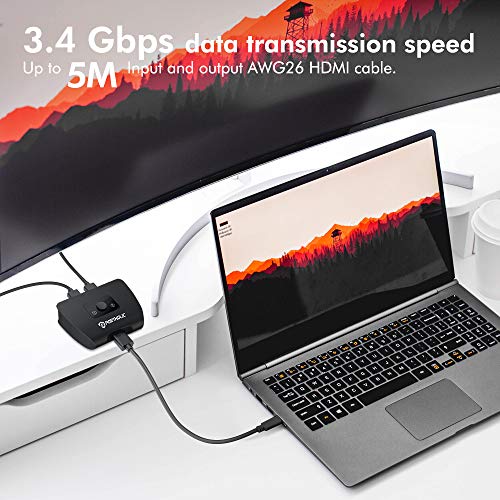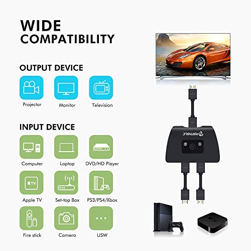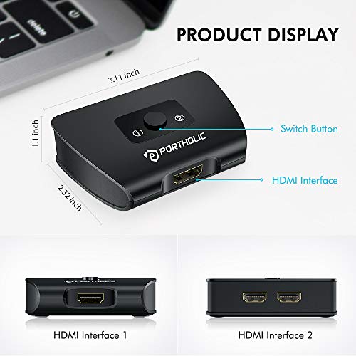 Switch HDMI PORTHOLIC 4K HDMI Splitter Bi-direzionale 2 in 1 o 1 in 2, commutatore manuale supporta HD 4K 3D 1080P per Xbox, PS4/3, lettore Blu-ray/DVD/DVR, Roku,Firestick,Apple TV ecc.
