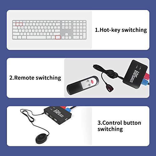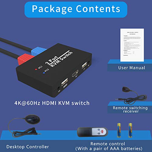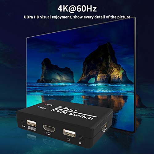 Switch KVM HDMI, selettore switch USB per 2 computer che condividono un set di tastiera, mouse, stampante, supporto monitor 4K@60Hz/ HDMI 2.0, switcher per periferiche USB con interruttore hot key