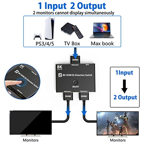 Switch HDMI 2.1 splitter 8K Bi-direzione 8K @ 60Hz 4K @ 120Hz Converter 48Gbps Splitter di trasmissione ad alta velocità per Xbox PS4/5 Monitor