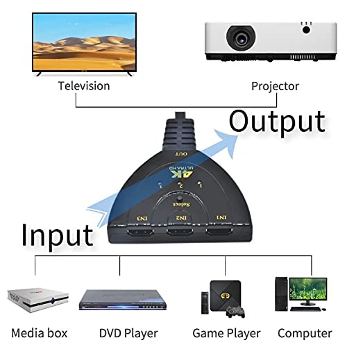 Switch HDMI 4K, SZJUNXIAO Splitter HDMI 3 In 1 Out HDMI Supporta 4K Full HD 3D HDMI Splitter con Cavo per HDTV/Xbox/PS3/Fire Stick/BLU-Ray DVD-Player