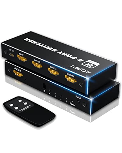[ Switch HDMI 2.1 8K 4x1 ] Lo switch HDMI 4 in 1 collega fino a 4 sorgenti HDMI con un display UHD e risolve i problemi quando si utilizzano più dispositivi HDMI. Accensione a 5 V/2 A. Passaggio senza cuciture tra giochi, TV, desktop, ecc. Rende la tua vita e il tuo tempo libero a casa super facile.