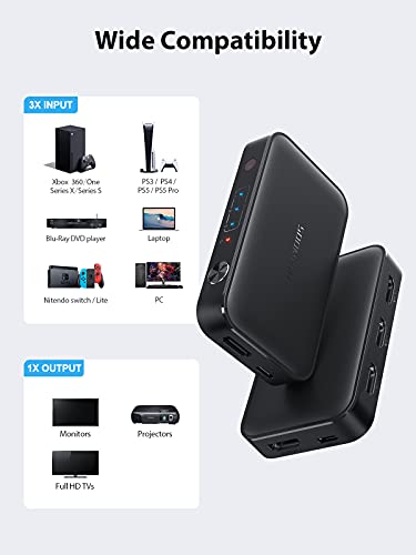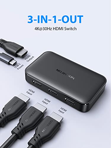 Switch HDMI 4K 3 in 1 out con Telecomando, SOOMFON Commutatore HDMI Automatico 4K@30Hz HDR 3D HDCP1.4, per PC/Laptop/XBOX/PS 5/4 e TV/Proiettore/Monitor