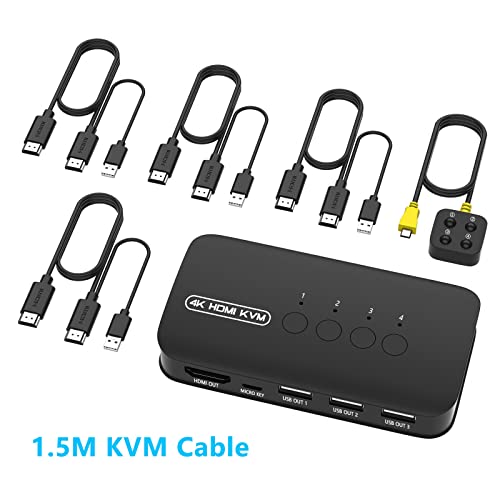 KVM Switch 4 Porte, USB HDMI Commutatore Switch per 4 PC Supporta 4K/2K @ 30Hz con 4 Cavi KVM e 1 Controller Desktop