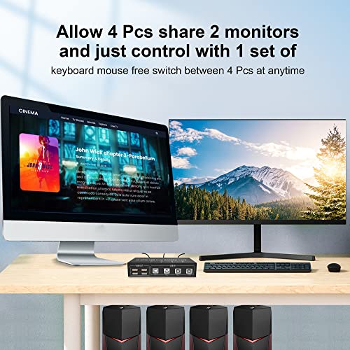 【Interruttore KVM a 4 porte Dual Monitor HDMI + DisplayPort】Controlla fino a 4 computer o laptop con doppie uscite grafiche HDMI e DisplayPort per condividere 1 set di tastiera, mouse e 2 monitor per display esteso o con mirroring. (Per le configurazioni a doppio monitor, richiede ogni computer supporta 2 funzioni di visualizzazione o superiore e deve supportare display esteso).