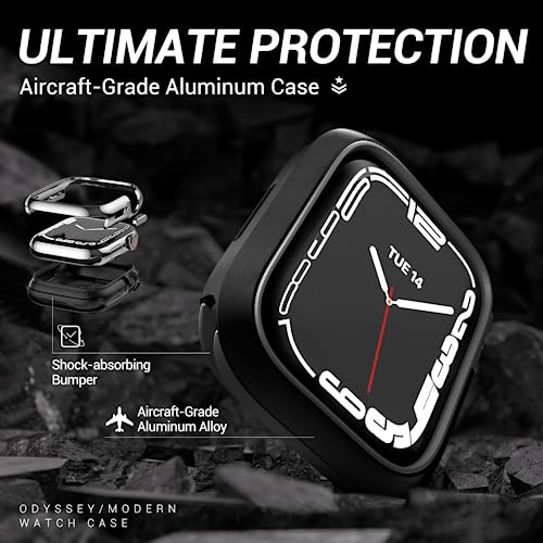 [PROTEZIONE DI GRADO MILITARE DI ALTO STANDARD USA] Il design composito in alluminio aeronautico e morbido TPU interno massimizza la protezione contro cadute e impatti! Odyssey ha superato i test di protezione di livello militare statunitense. Proteggi il tuo Apple Watch con la migliore custodia Apple Watch!