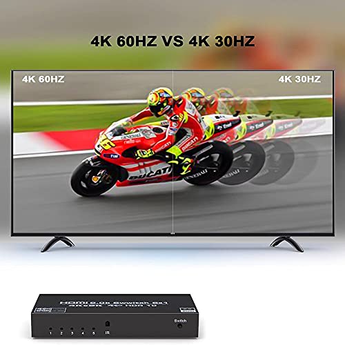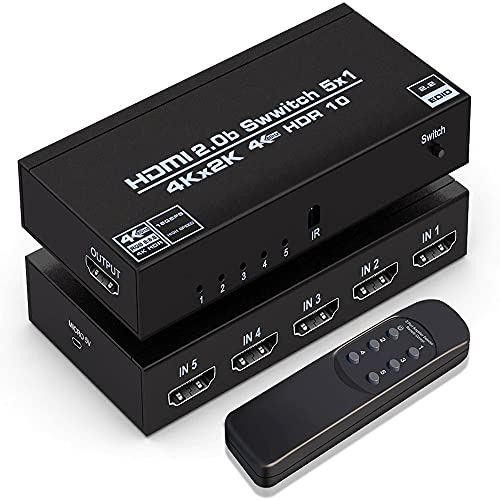 Switcher HDMI 5 in 1 out, switch HDMI con telecomando 5 porte 4K 60Hz, 5 in 1 output Casella di selezione hub switcher HDMI, supporto HDR, HDCP 2.2, 3D