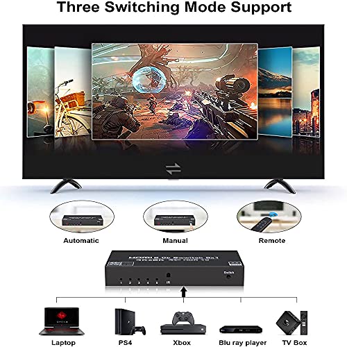 [Modalità di commutazione multiple] Switch box HDMI con uscita 5 in 1 con telecomando, pulsante di commutazione manuale integrato, dotato di telecomando a infrarossi;