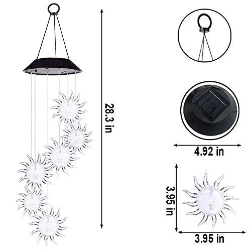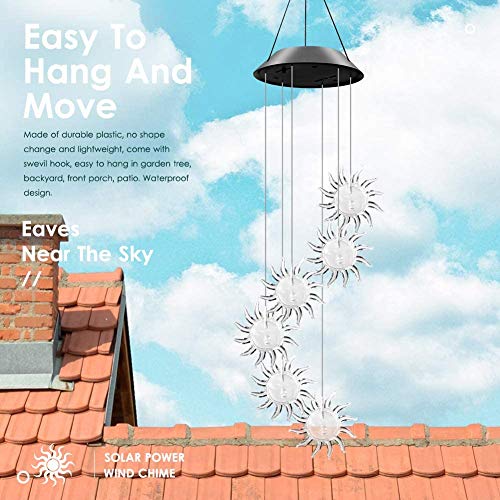 【Campanello di vento a energia solare】 Dotato di sensore di luce sensibile e materiale ABS di alta qualità e lunga durata, le luci a LED non si sbiadiscono né si deformano. Il design delle forniture a energia solare è a risparmio energetico e facile da usare. Non è richiesto alcun cablaggio o alimentazione esterna. All'aperto, si caricano durante il giorno e si illuminano automaticamente di notte.