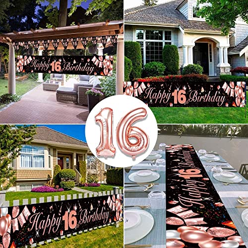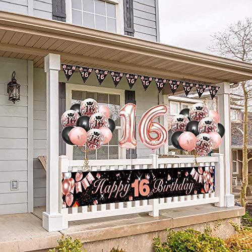 SWPEED Palloncini 16 anni Compleanno Striscione per Donna, Compleanno Decorazioni Striscione Sfondo 16 anni Oro Rosa Nero Palloncini, Compleanno 16 anni Addobbi, 16 anni Decorazioni Kit Feste
