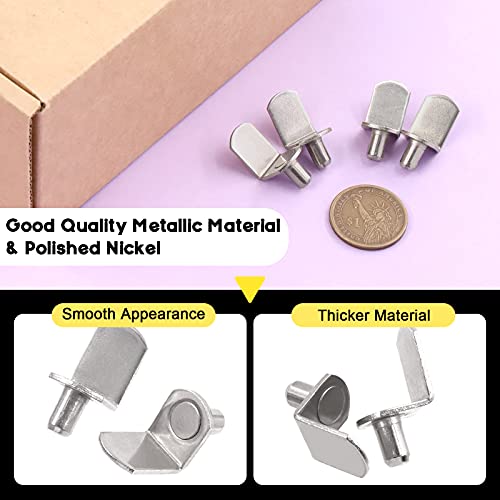 Swpeet 60 perni a L da 1/4 di pollice, 6 mm di supporto argentato, perni di supporto per mensole in acciaio placcato per ripiani su librerie, armadi e centri di intrattenimento