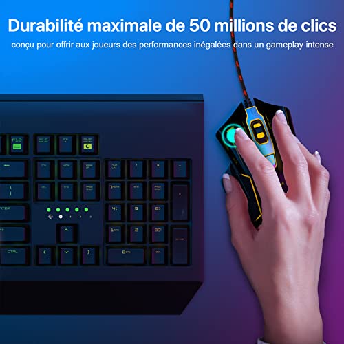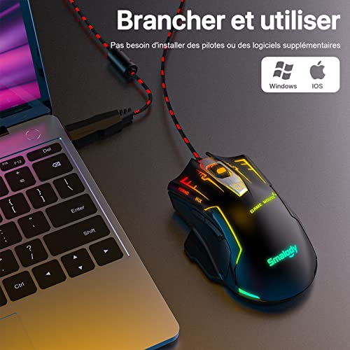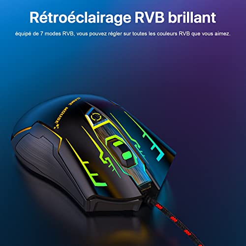 SWTOIPIG Mouse da gioco Mouse, RGB Mouse ottico USB cablato Mouse da gioco leggero Puntamento ad alta precisione Multi-pulsante Cavo intrecciato da 1,4 m PC/Mac