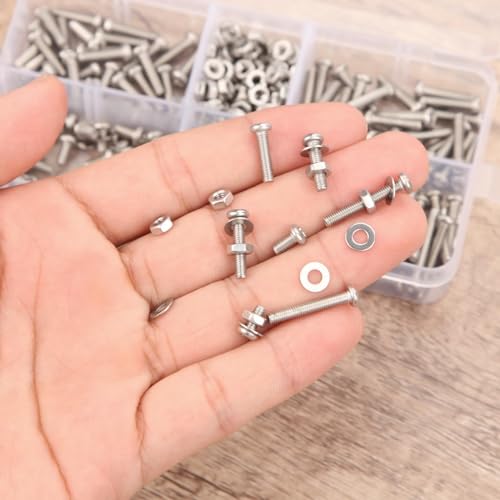 SWTYExt 360 Pezzi M3 Set Viti 304 Inossidabile con Dadi e Rondelle Assortite a Croce Set di Dadi e Bulloni per Elettronica Industriale dell'ufficio Domestico Macchina