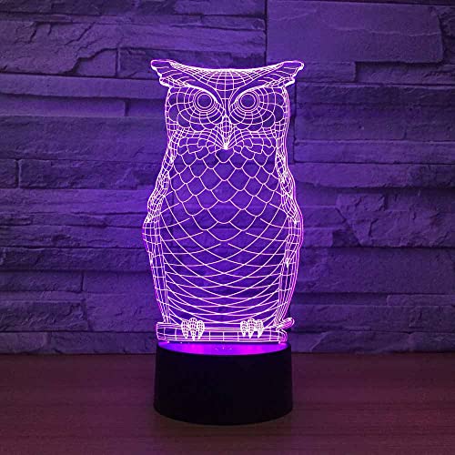 SWTZEQ Forma di gufo cartone animato 3D Lampade, Illusione Ottica Luce Notturna, 16 color transform touch and remote control camera da letto per bambini lampada da tavolo sleep decorazione luce regalo