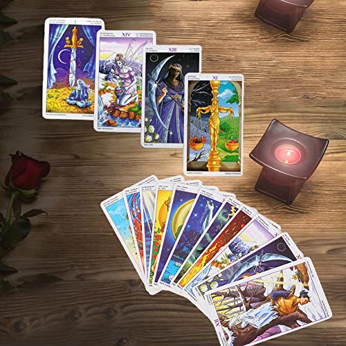【78 carte dei tarocchi】Le carte dei tarocchi sono 10,3 x 6 cm, leggere e più grandi del normale, puoi metterle nella tasca superiore dei tuoi vestiti o nella tasca dei pantaloni, goditi il divertimento dei tarocchi con i tuoi amici in qualsiasi momento e ovunque.
