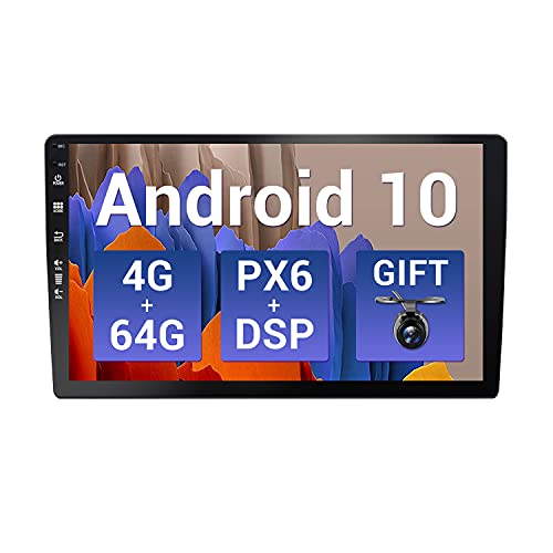 SXAUTO [PX6+DSP] Android 10 Autoradio Navigation - [4G+64G] - Camera GRATUITI - 10.1 Pollici - 2 Din - 2.5D Schermo - Supporto DAB HDMI AHD 4K-Video Volante 4G WiFi Carplay Android Auto Bluetooth5.0