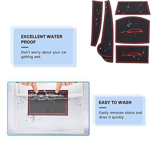 SXCY per 2021+ Kona Tappetini Antiscivolo, Tappetini in Gomma Per Portaoggetti Bracciolo, Portabicchieri, Scanalatura Porta, Interni Auto Accessori (Rosso)