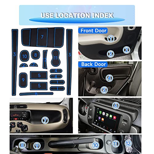 SXCY per Fiat Panda 2021 2022 2023 Tappetini Antiscivolo Fiat Panda/City Cross/Hybrid Tappetini in Gomma per Console Centrale, Porta Bicchieri, Scanalatura Porta 2023 Fiat Panda Accessori (blu)
