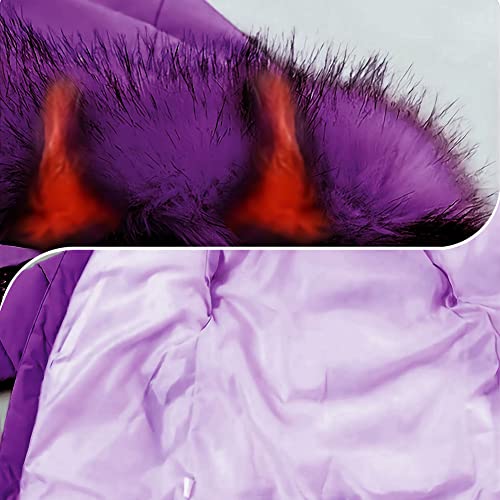 SXSHUN Bambina Giacca Slim da Principessa Piumino con Cappuccio di Pelliccia Ragazza Cappotto Caldo Imbottito in Cotone, Viola, 3 Anni/L