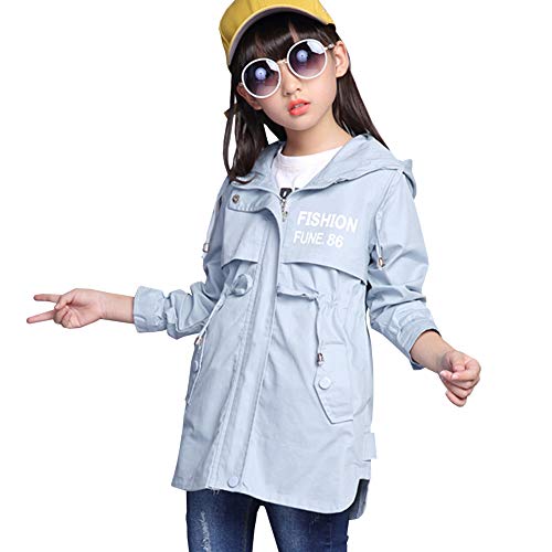 SXSHUN Cappotto da Ragazza Giacca A Vento da Bambina Trenchcoat con Cappuccio Floreali Stampato Abbigliamento,Grigio,6 Anni