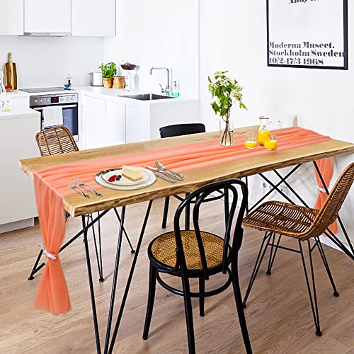 SXUUXB Runner da tavolo, moderno, 70 x 300 cm, in chiffon, boho, decorazione da tavolo, per soggiorno, tavolo, matrimonio, compleanno, decorazione (arancione e rosa)