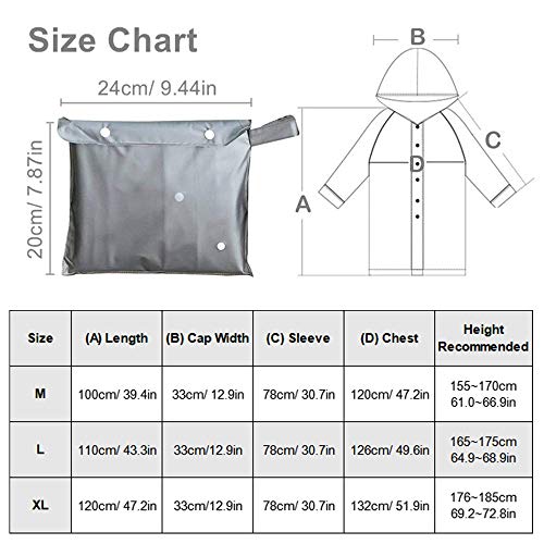 Sycle circle Impermeabile Trasparente Riutilizzabile con Cappuccio e Maniche, Poncho Antipioggia di Emergenza Cappotto da Pioggia Unisex (Grigio, XL)