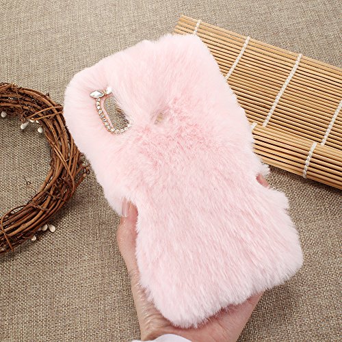Sycode Custodia per Huawei P20 Lite,Pelliccia Faux Cover per Huawei P20 Lite,Carina Morbida Pelosa Coniglietto Pelliccia Peluche Custodia per Huawei P20 Lite-Rosa