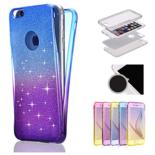 Sycode 360 Gradi Glitter Custodia per iPhone 6S / 6,Gradiente Colore Morbido 2 in 1 Anteriore E Posteriore Trasparente Custodia Cover per iPhone 6S / 6-Blu Viola