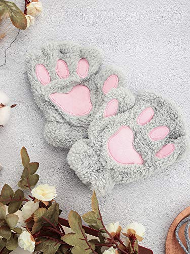 Syhood 2 Paia Guanti di Zampa Gatto Morbido Guanti Invernali Senza Dita Halloween Cosplay Costume Guanti di Peluche Guanti di Zampa in Peluche Invernali Senza Dita per Ragazza e Donna