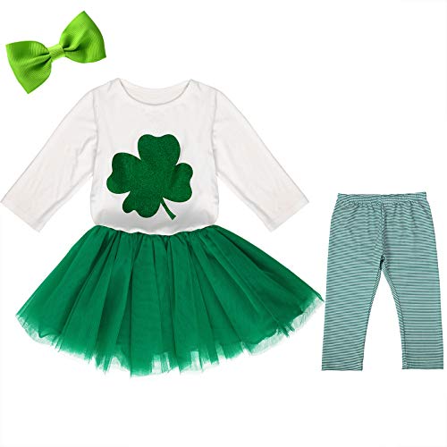 Materiale confortevole: l'abito e i leggings con stampa trifoglio del vestito del giorno di San Patrizio sono realizzati in cotone, poliestere e tulle, morbidi, traspiranti, elastici e resistenti, non recano danni alla pelle del tuo bambino