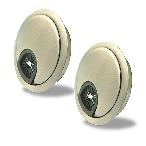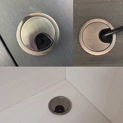 Quantità e dimensioni:la confezione include 2 x passacavo per scrivania in metallo 60mm.diametro superiore:69 mm,apertura:58 mm,altezza:12 mm.Il foro per i cavi è di circa 22 mm x 19 mm.