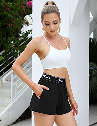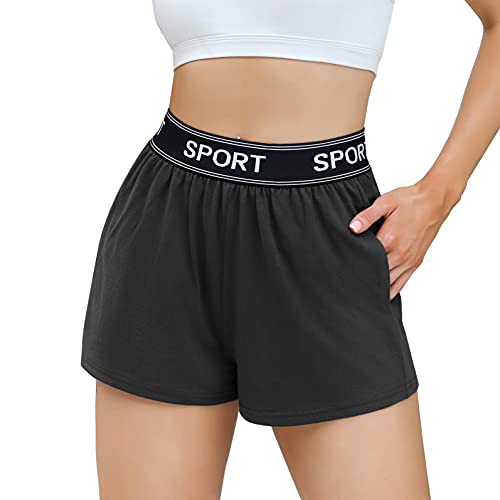 Sykooria Pantaloncini Sportivi Donna Cotone con Tasche Pantaloncini Casual Donna con Cintura Lettere per Fitness,Casuale