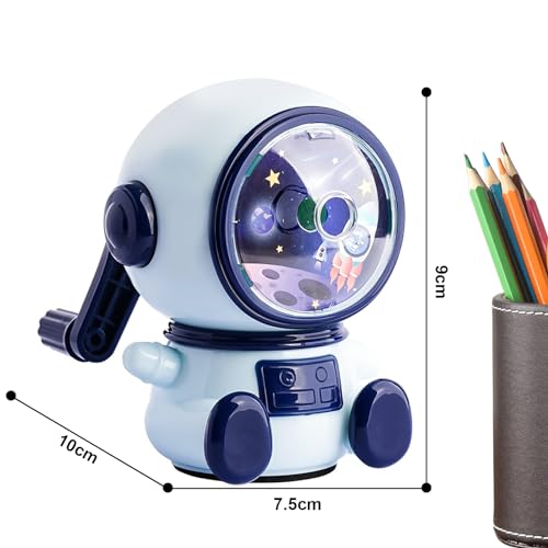 【DESIGN DI SICUREZZA】Progettato per la massima tranquillità, il temperamatite dell'astronauta non pizzicherà le dita, dopo aver inserito la matita, ruotare la maniglia e tagliare, quindi ruotare la maniglia per utilizzare la matita.