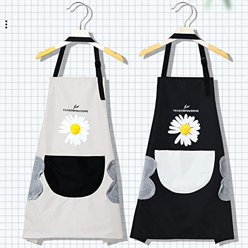 Sylbx 2 Pcs Grembiuli Grembiule Cucina Impermeabile Grembiule da Cucina Chef Impermeabile con Tasche,Regolabile,Universale per Uomo e Donna, Adatto per Barbecue, Ristoranti, Caffetterie (Nero + Beige)