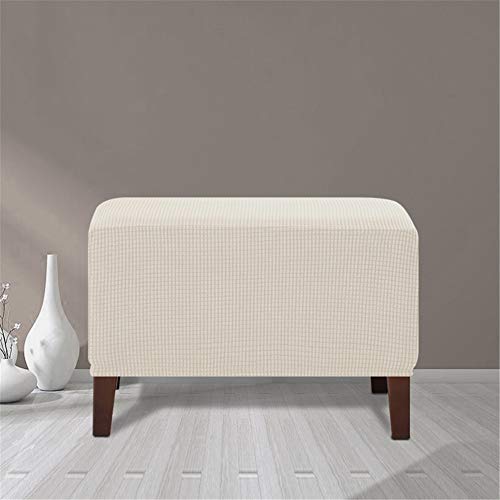SYLC Fodera in Ottomano Elasticizzato, Copertura per Sgabello Rettangolare, Copri Pouf Copertura Dell'Ottomano, Protezione per Fondo Elastico (Grande 1 Pezzo,Beige)