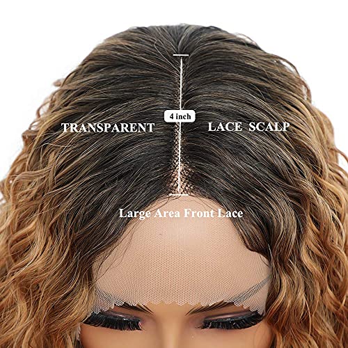 Sylhair Parrucca riccia Lace Front per le donne nere 30 "onda d'acqua trasparente parrucca di pizzo Ombre radice scura rosso marrone Parrucca