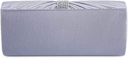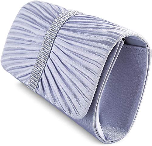 SYMALL Borsetta da Sera Raso Strass Pochette Elegante da Donna Borsetta da Matrimonio Borsetta a Pieghe con Catena per Nozze Festa Partito, Argento