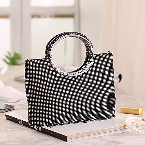 SYMALL Donna Portafoglio a mano Notte Brillante da Imitazione Incorporato Borsa per matrimonio Novia Baile Coctel Festa Clutch Ceremonia Elegante Borsa Con Catena Novia Frizione, Nero