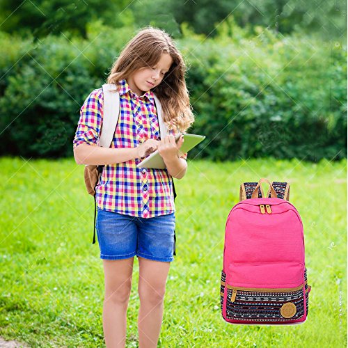 SymbolLife Stile Casual Computer Portatile Leggero Scuola dello Zaino di Viaggio del Ricamo di Disegno con una Penna Sacchetto Libero Rose