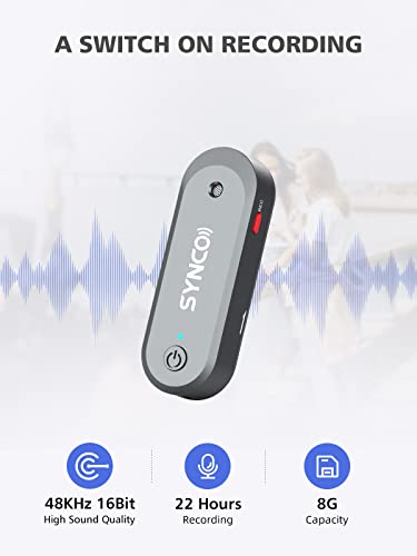 【Portatile con 13 ore di registrazione】 Il trasmettitore pesa solo 15 grammi e si aggancia facilmente a una camicia. Il ricevitore funge anche da custodia di ricarica, assicurando che il trasmettitore sia completamente carico entro 2 ore, fornendo fino a 13 ore di registrazione.