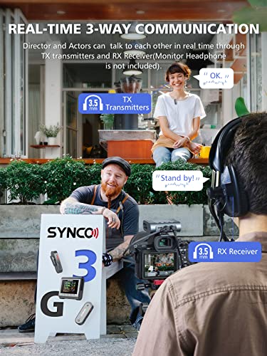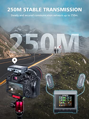 【Rete di comunicazione a tre canali fino a 250 m】 Con il microfono lavalier wireless SYNCO G3, sia il ricevitore (sul lato della telecamera) che i trasmettitori (nella posizione degli attori) possono parlare e monitorare il suono in tempo reale. Funziona in tandem con l'algoritmo SyncoderTM di 3a generazione, creando una rete di comunicazione a tre canali fino a 250 m.