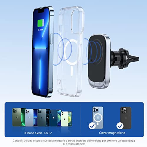 Syncwire Caricatore Wireless Auto, Supporto Fissabile sui Bocchettoni dell'Aria con Allineamento Automatico a 360° Regolabile per iPhone 13/13 Pro/13 mini/13 PRO Max/12/12 Pro/12 mini/12 PRO Max,Nero